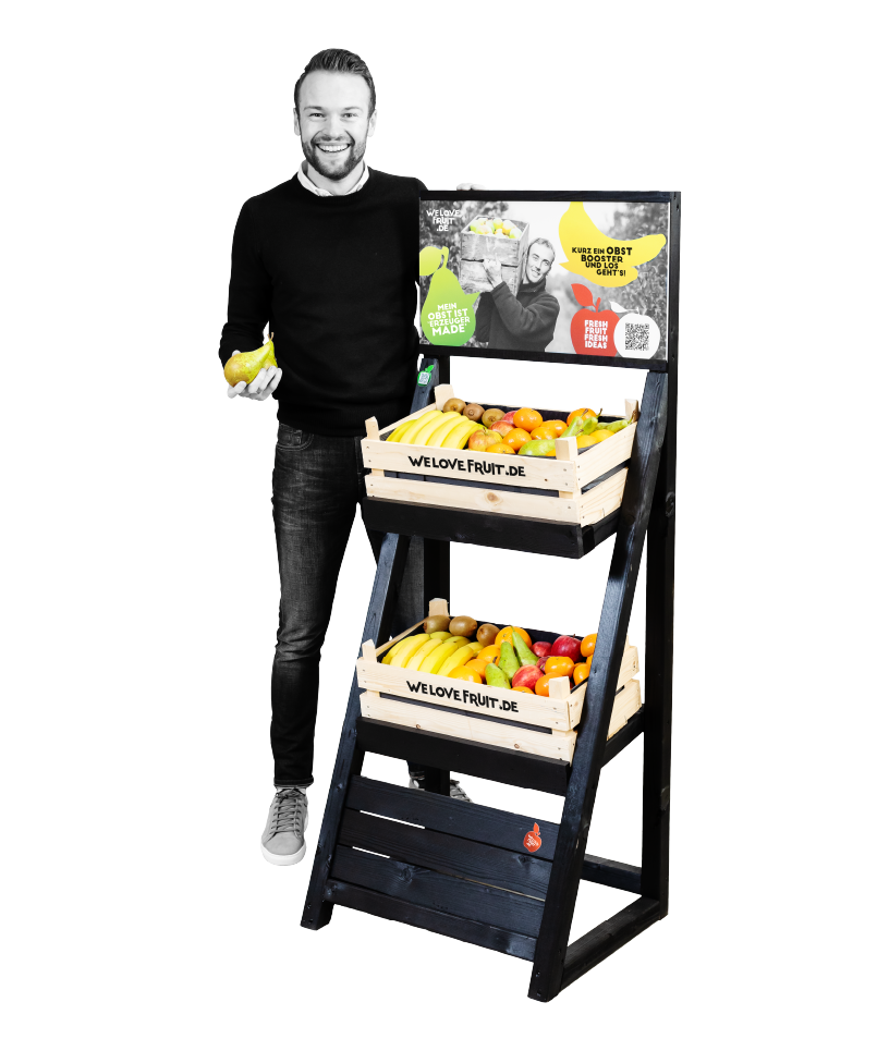 Das Angebot von frischem Obst allein reicht nicht immer aus, um das Verhalten der Menschen strukturell zu verändern. Deshalb ist unser Konzept umfassender und konzentriert sich auf das Erleben und die Förderung eines gesunden Ernährungsverhaltens. Mit unseren Karten und Displays lenken wir die Aufmerksamkeit besonders auf das Obst. Auf eine lockere und unkomplizierte Weise teilen wir Informationen über die Eigenschaften und Vorteile von Obst. Manchmal mit einem Augenzwinkern, aber immer in der Absicht, den Menschen Einblicke in ihren Lebensstil zu geben.
